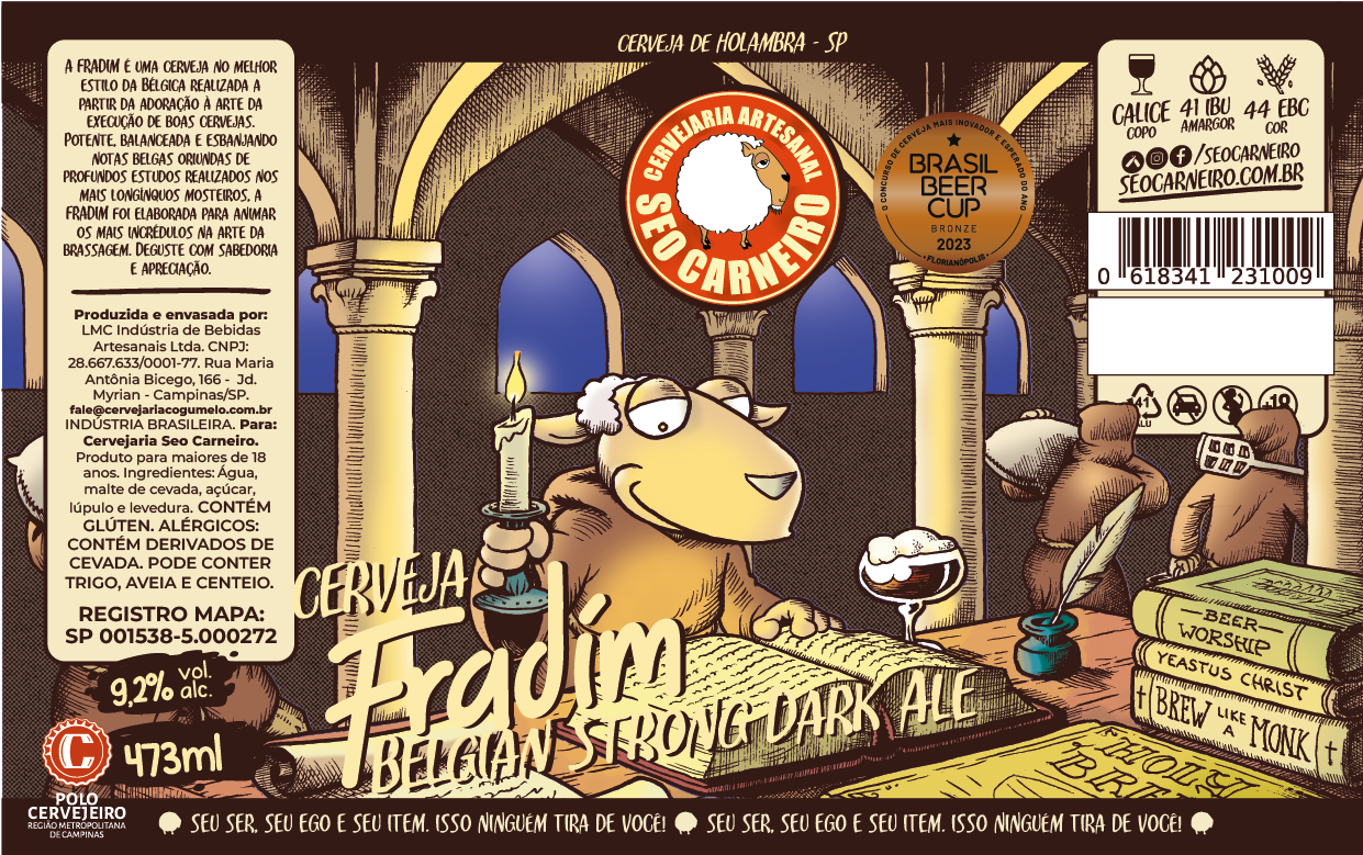 Fradim (ex-Monge) é uma cerveja no melhor estilo belga, potente, balanceada e esbanjando notas frutadas oriundas das leveduras e do candy sugar adicionado ao conjunto.